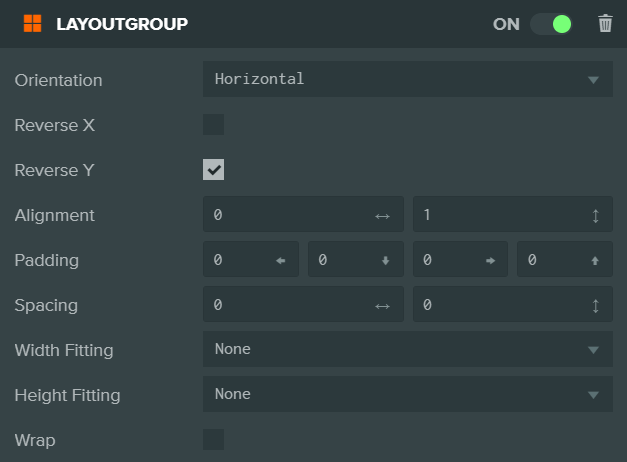 Scriptコンポーネントを使用してLayoutGroupコンポーネントのプロパティを制御できます。 LayoutGroupコンポーネントのスクリプトインターフェイスはこちらにあります。