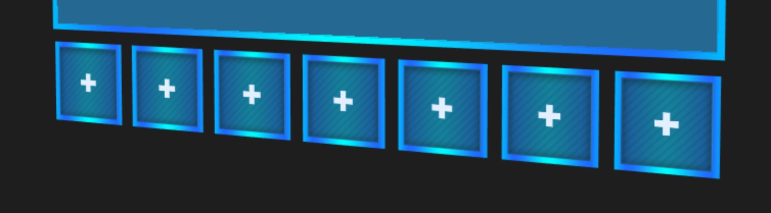 このボタンの列は、スペーシング (Spacing) とパディング (Padding) が設定された水平レイアウトグループ (Horizontal Layout Group) を使用して並べられており、ボタンが正しい幅に合うようにされています。幅 (Width) や高さ(Height) のフィッティングは使用されていません。