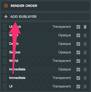 Add a sub-layer to the layer composition by selecting ADD SUBLAYER and choosing which sub-layer you wish to add. Once your layer is in the Render Order list you can re-arrange the order by dragging each sub-layer up and down.